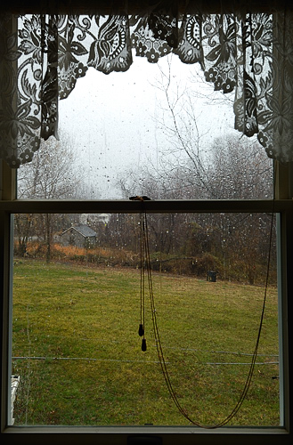 I sit at this window every morning from late fall to early spring watching for the school bus. When all the leaves are off the trees until they come back in the spring we have a clear view of the bus stop just before ours. We live on a corner so the boys just have to walk to the end of the drive way and a short way before they are at the bus stop. This morning I was sitting there thinking that there must be something interesting to photograph in all that. So I started to really look and see the possibilities.